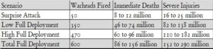 Figure 3: Estimated Warheads and Casualties in Nuclear Conflict Scenarios